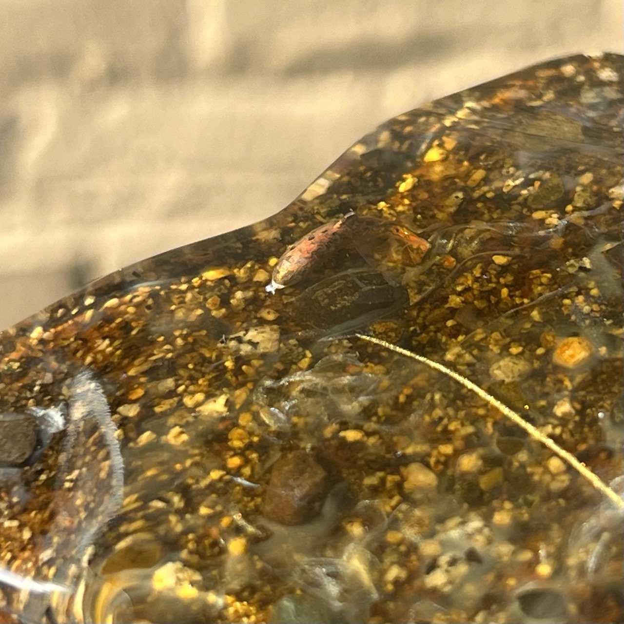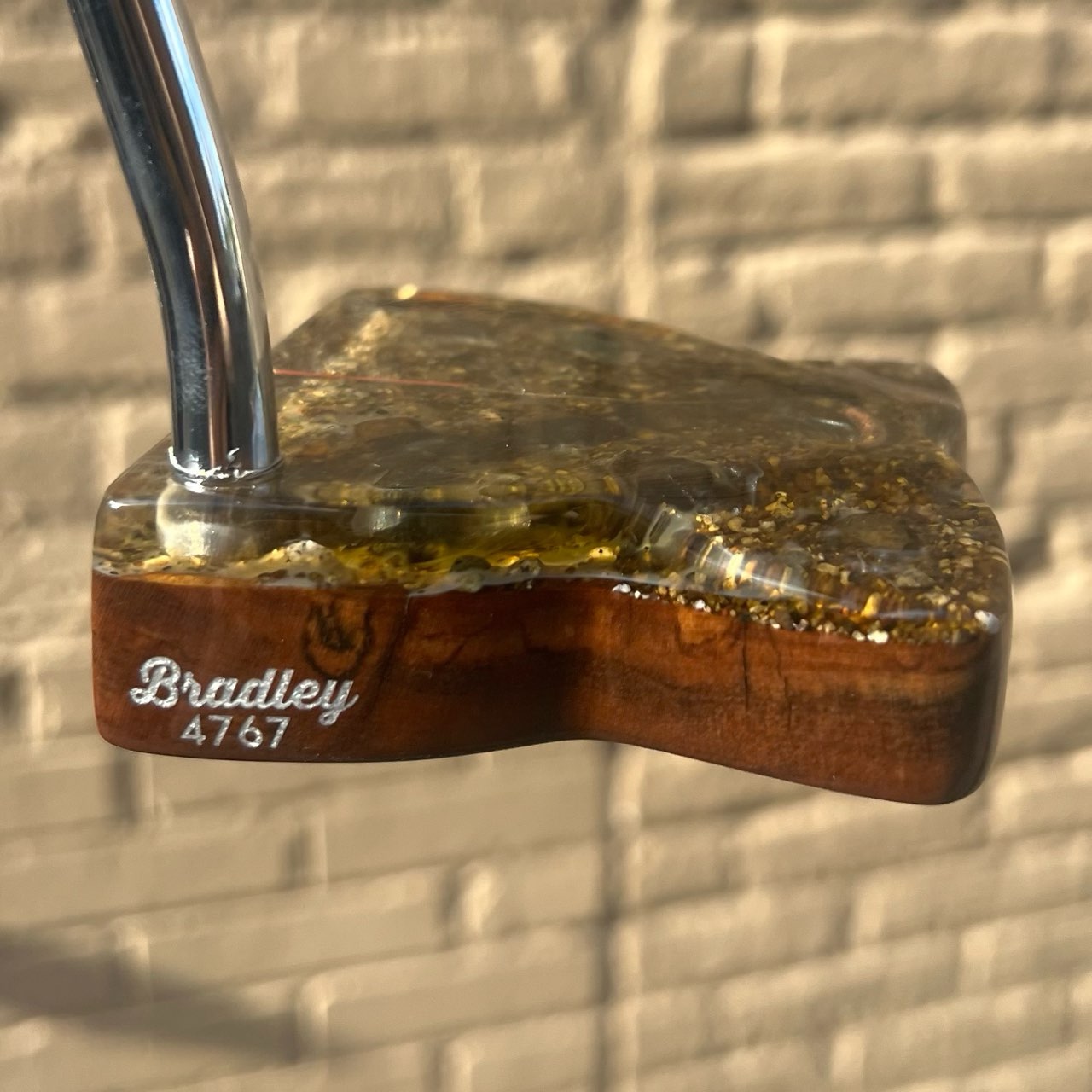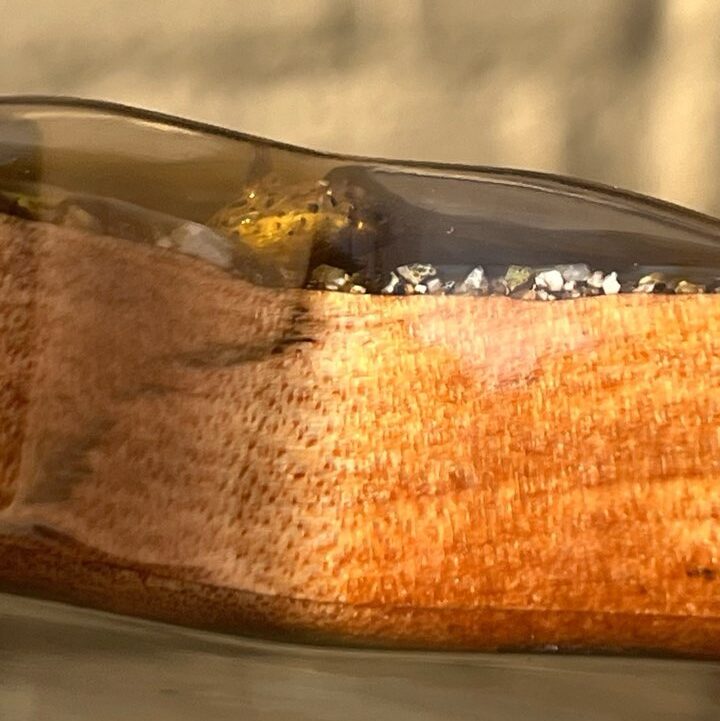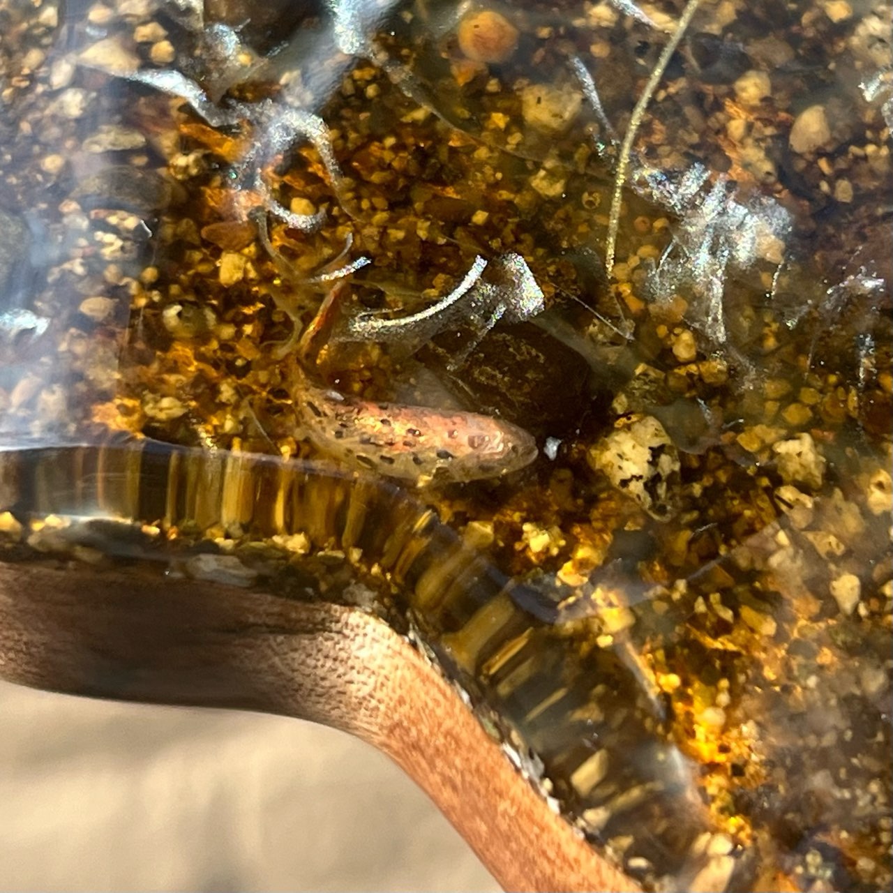 For the top, a 3D-printed brown trout was hand-painted and placed so that it’s rising to take a dry fly.