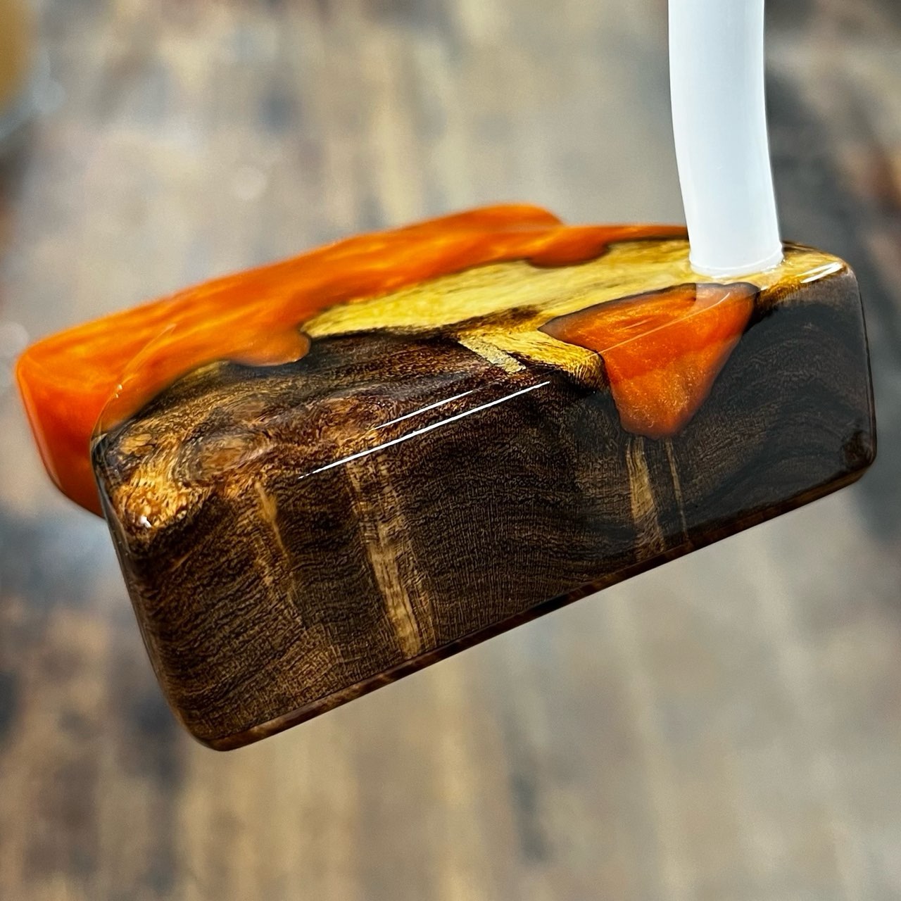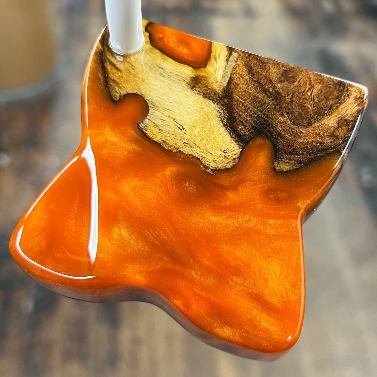 We used mesquite wood, a common Texas tree, and covered it in a University of Texas orange acrylic.