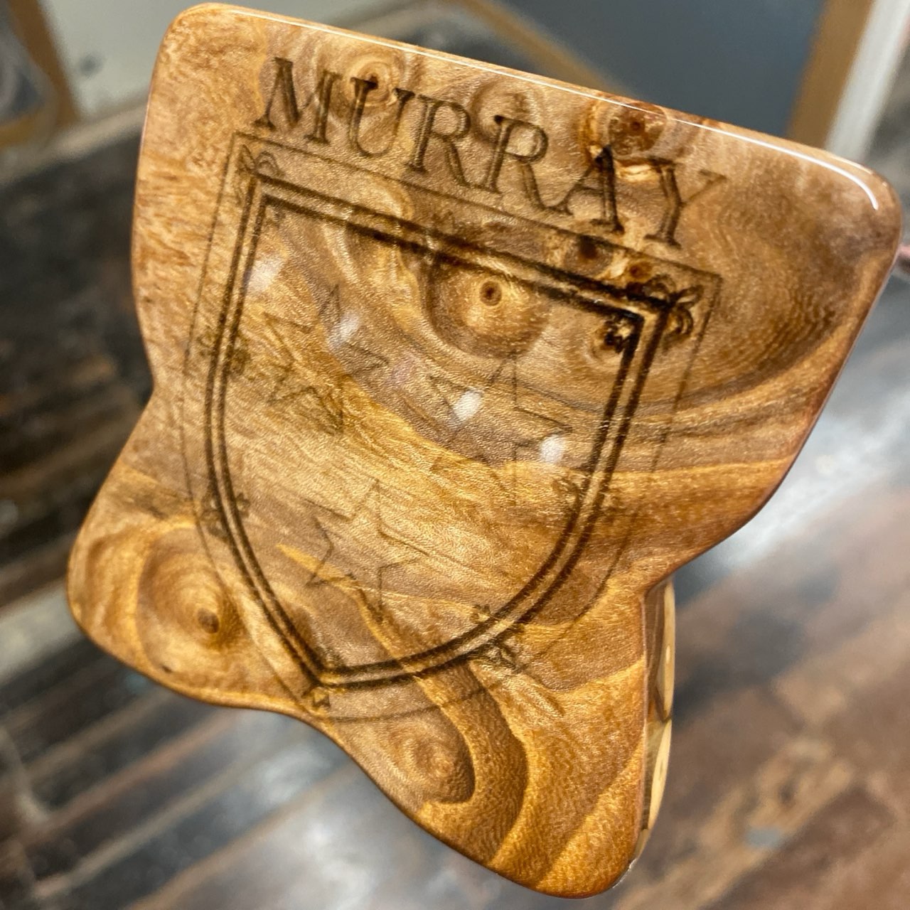 On the bottom, we went with a simple burned family crest.
