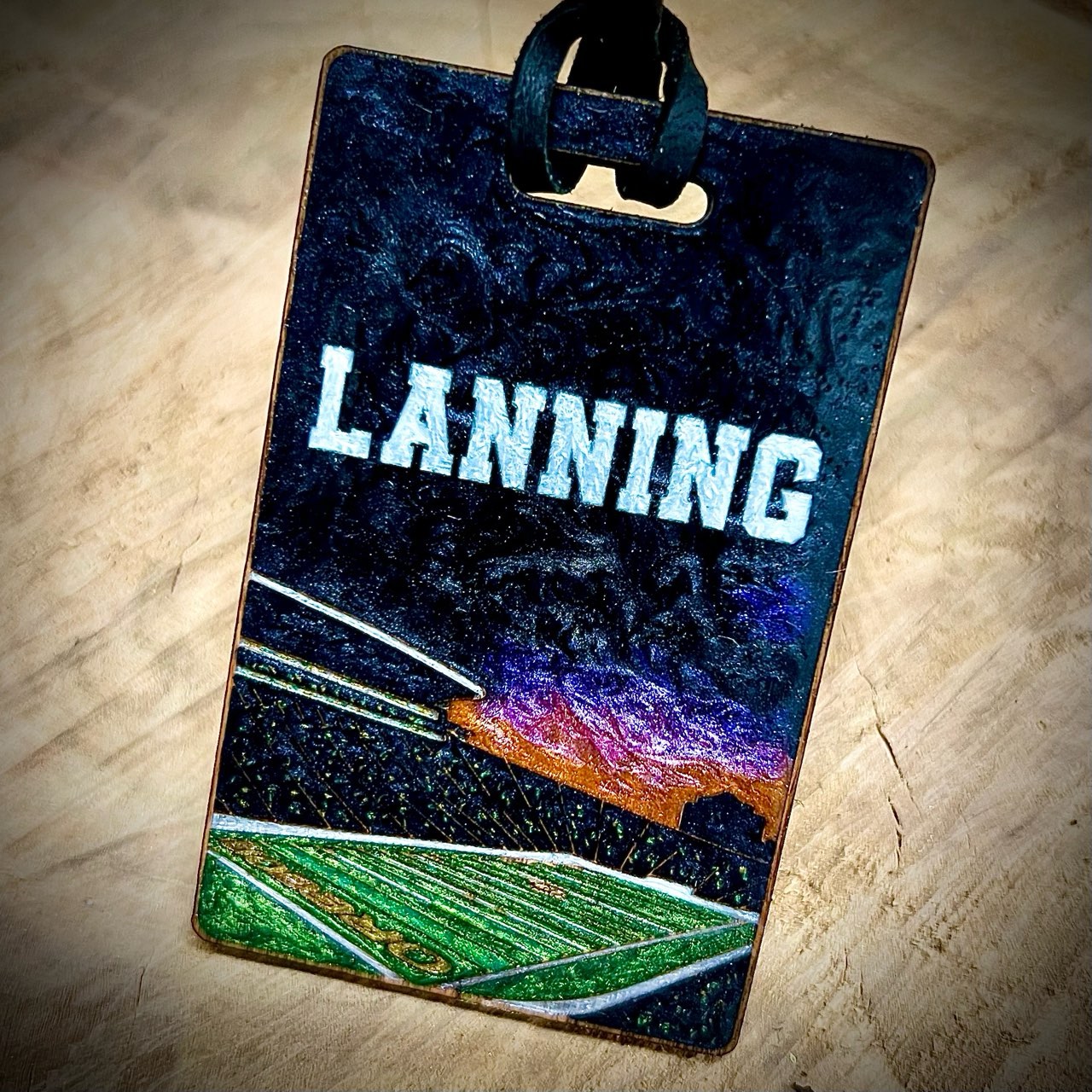 This custom bag tag is hand-painted by Bradley in Grants Pass, Oregon.