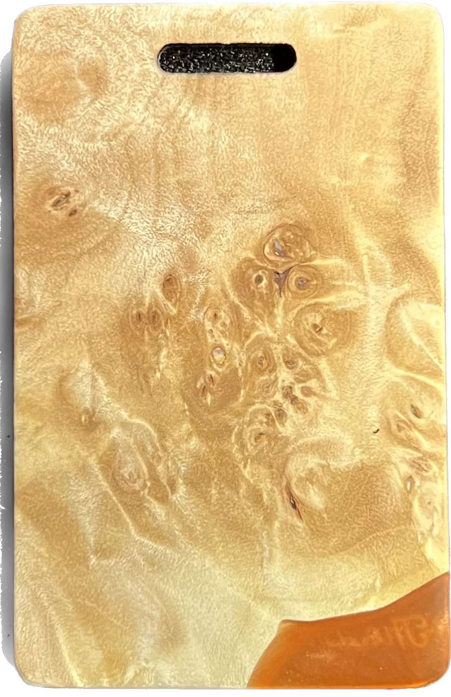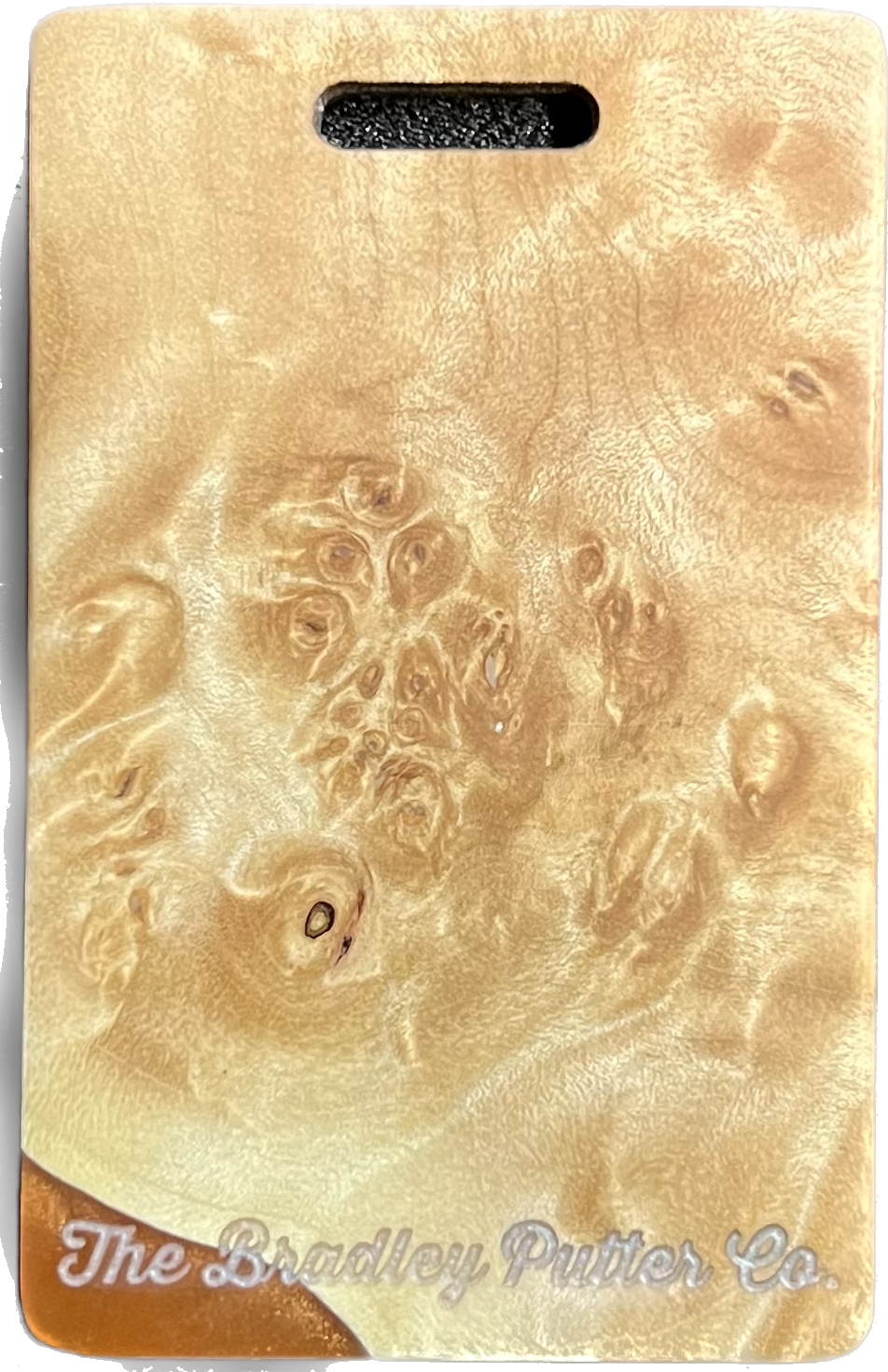 Add a splash of color to your golf bag with a Bradley bag tag. During the putter manufacturing process, there are often small pieces removed from the wood block during the shaping. These are then cut down to size, laser engraved to shape, and sanded by hand to remove the black scorch marks from the laser. They are then polished with a UV coating, and are now ready for your personalization. You are purchasing this exact piece, not one that will just look like it. Customize it further with your name, and even add a small single color image on the back.