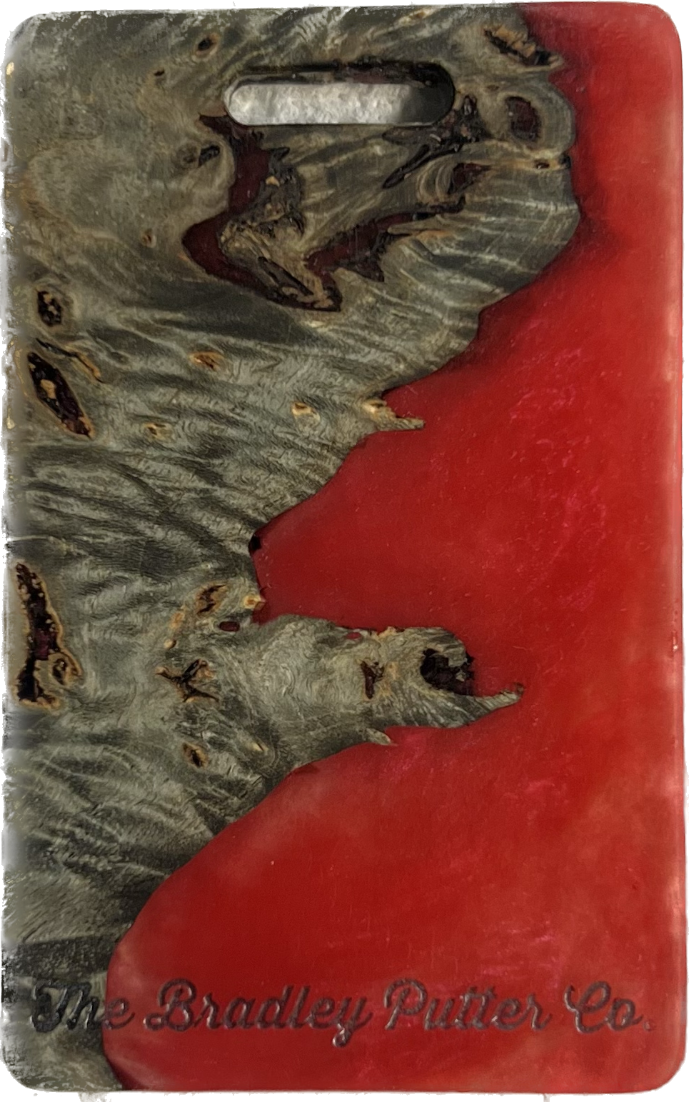 Add a splash of color to your golf bag with a Bradley bag tag. During the putter manufacturing process, there are often small pieces removed from the wood block during the shaping. These are then cut down to size, laser engraved to shape, and sanded by hand to remove the black scorch marks from the laser. They are then polished with a UV coating, and are now ready for your personalization. You are purchasing this exact piece, not one that will just look like it. Customize it further with your name, and even add a small single color image on the back.