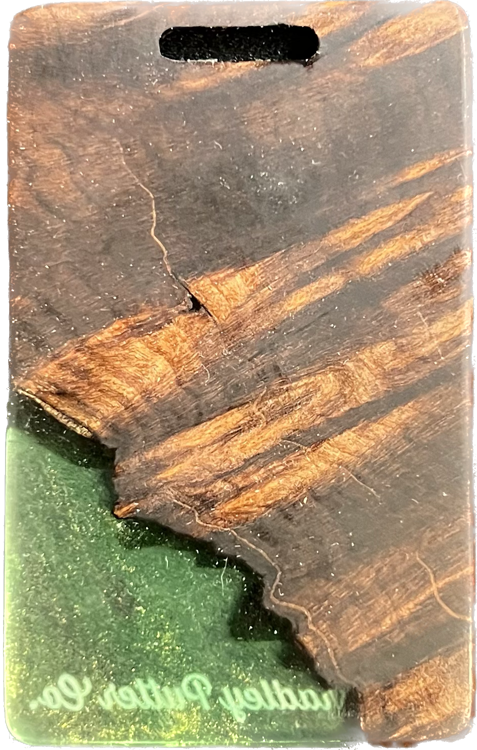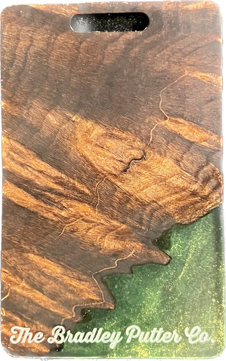Add a splash of color to your golf bag with a Bradley bag tag. During the putter manufacturing process, there are often small pieces removed from the wood block during the shaping. These are then cut down to size, laser engraved to shape, and sanded by hand to remove the black scorch marks from the laser. They are then polished with a UV coating, and are now ready for your personalization. You are purchasing this exact piece, not one that will just look like it. Customize it further with your name, and even add a small single color image on the back.