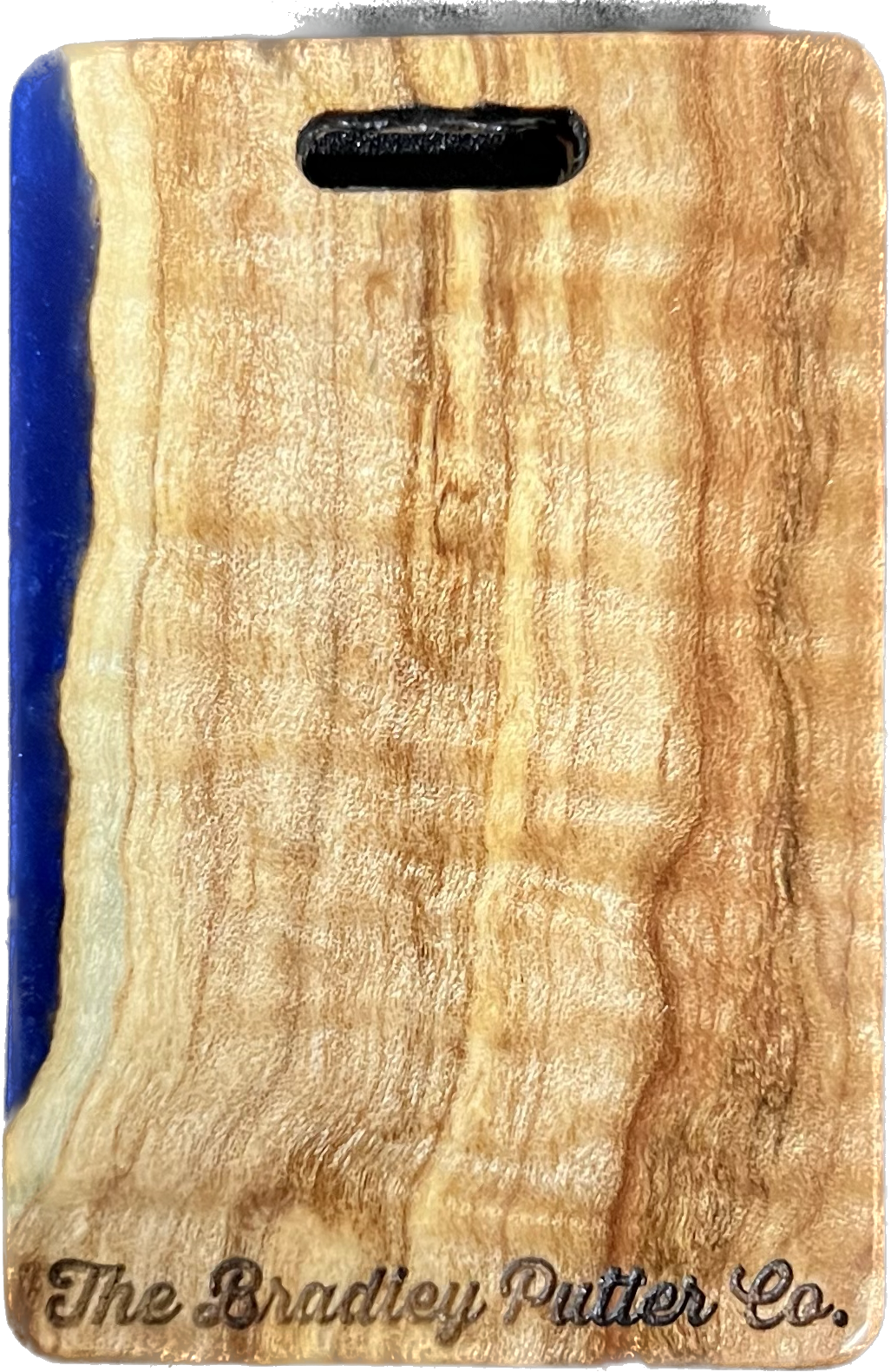 Add a splash of color to your golf bag with a Bradley bag tag. During the putter manufacturing process, there are often small pieces removed from the wood block during the shaping. These are then cut down to size, laser engraved to shape, and sanded by hand to remove the black scorch marks from the laser. They are then polished with a UV coating, and are now ready for your personalization. You are purchasing this exact piece, not one that will just look like it. Customize it further with your name, and even add a small single color image on the back.
