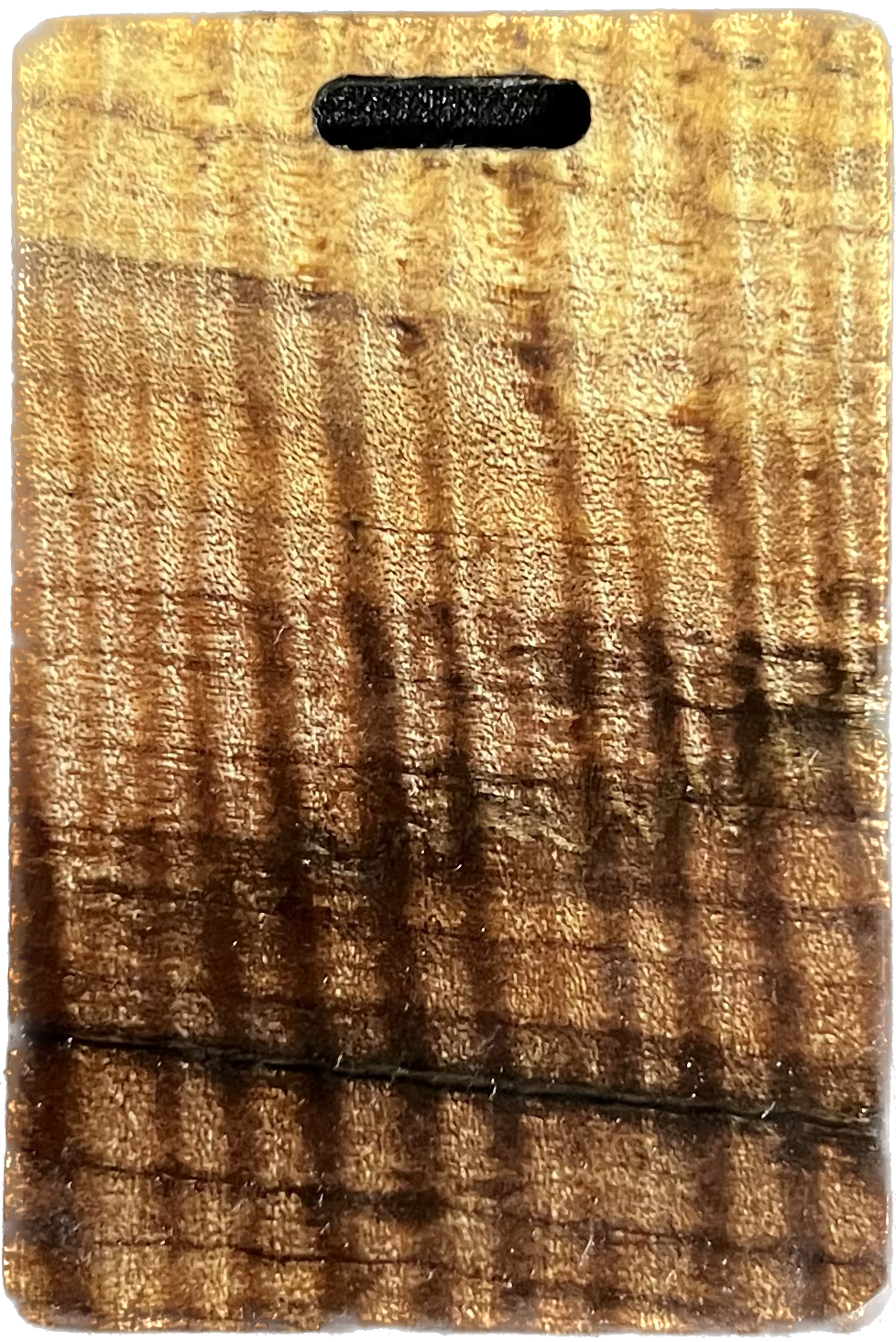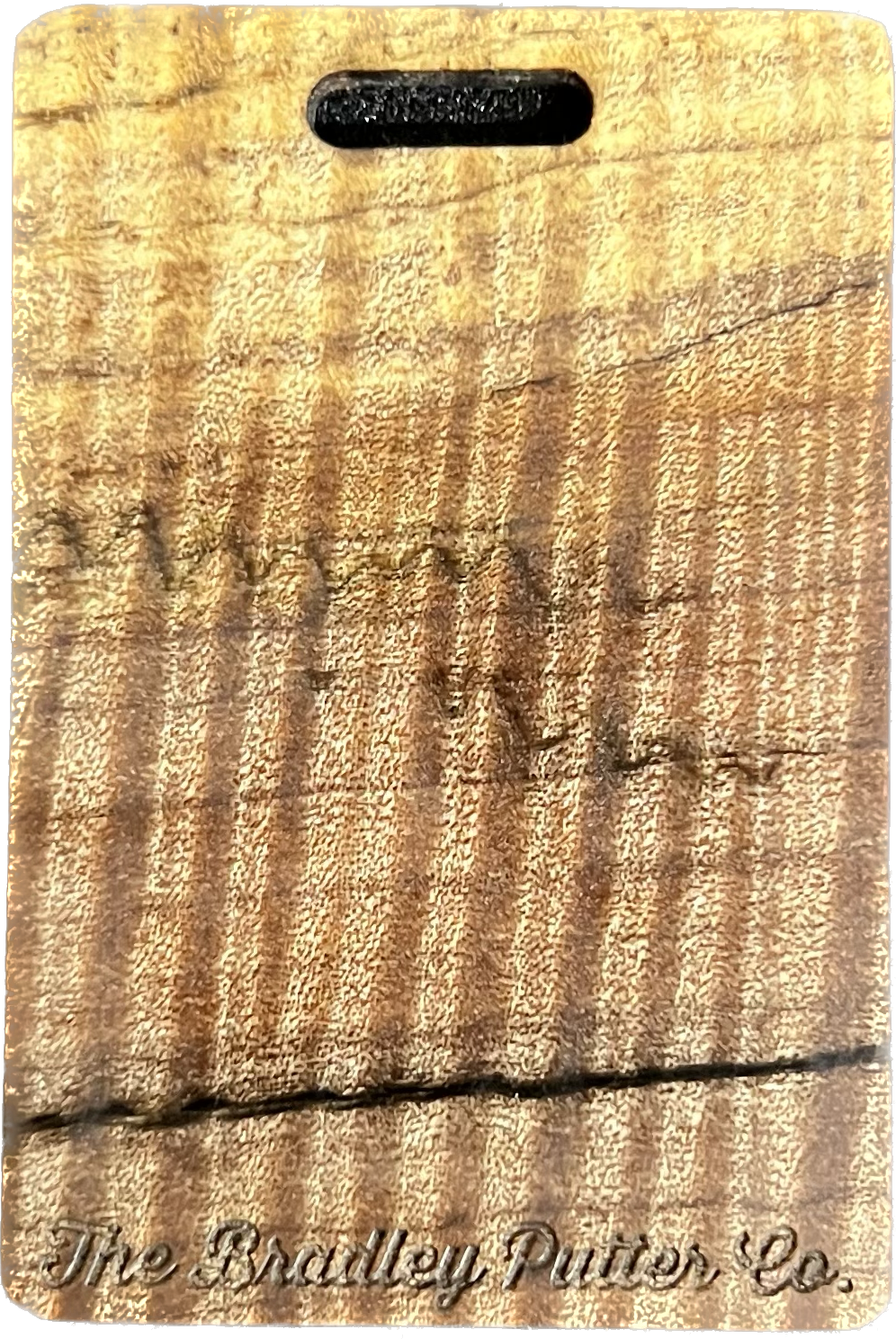 Add a splash of color to your golf bag with a Bradley bag tag. During the putter manufacturing process, there are often small pieces removed from the wood block during the shaping. These are then cut down to size, laser engraved to shape, and sanded by hand to remove the black scorch marks from the laser. They are then polished with a UV coating, and are now ready for your personalization. You are purchasing this exact piece, not one that will just look like it. Customize it further with your name, and even add a small single color image on the back.