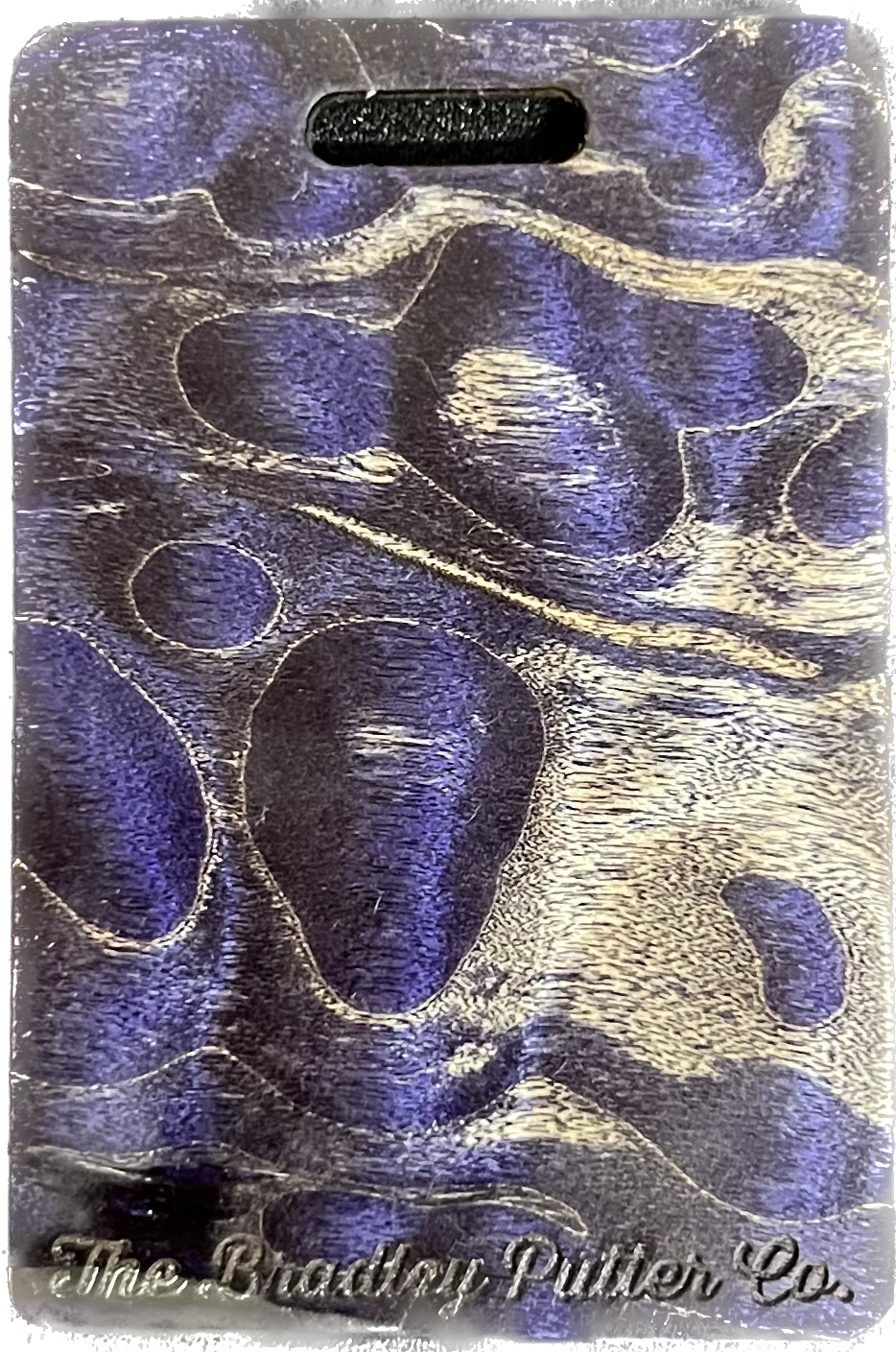 Add a splash of color to your golf bag with a Bradley bag tag. During the putter manufacturing process, there are often small pieces removed from the wood block during the shaping. These are then cut down to size, laser engraved to shape, and sanded by hand to remove the black scorch marks from the laser. They are then polished with a UV coating, and are now ready for your personalization. You are purchasing this exact piece, not one that will just look like it. Customize it further with your name, and even add a small single color image on the back.