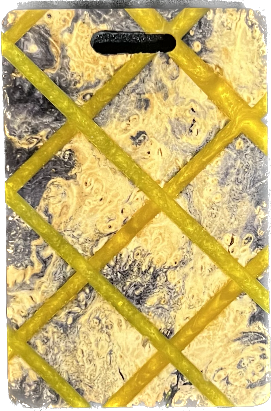 Add a splash of color to your golf bag with a Bradley bag tag. During the putter manufacturing process, there are often small pieces removed from the wood block during the shaping. These are then cut down to size, laser engraved to shape, and sanded by hand to remove the black scorch marks from the laser. They are then polished with a UV coating, and are now ready for your personalization. You are purchasing this exact piece, not one that will just look like it. Customize it further with your name, and even add a small single color image on the back.