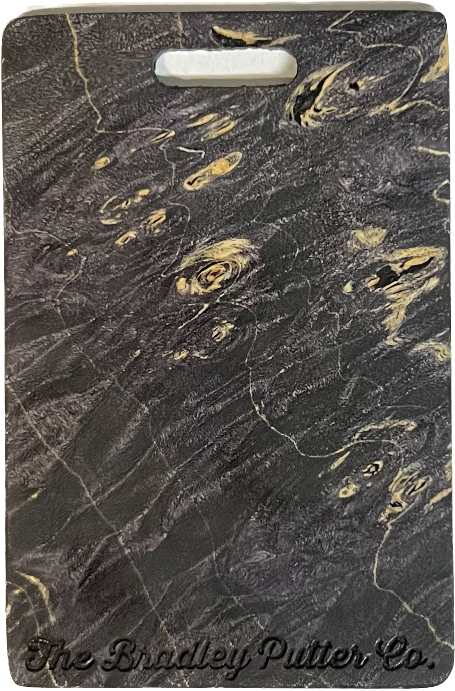 Add a splash of color to your golf bag with a Bradley bag tag. During the putter manufacturing process, there are often small pieces removed from the wood block during the shaping. These are then cut down to size, laser engraved to shape, and sanded by hand to remove the black scorch marks from the laser. They are then polished with a UV coating, and are now ready for your personalization. You are purchasing this exact piece, not one that will just look like it. Customize it further with your name, and even add a small single color image on the back.