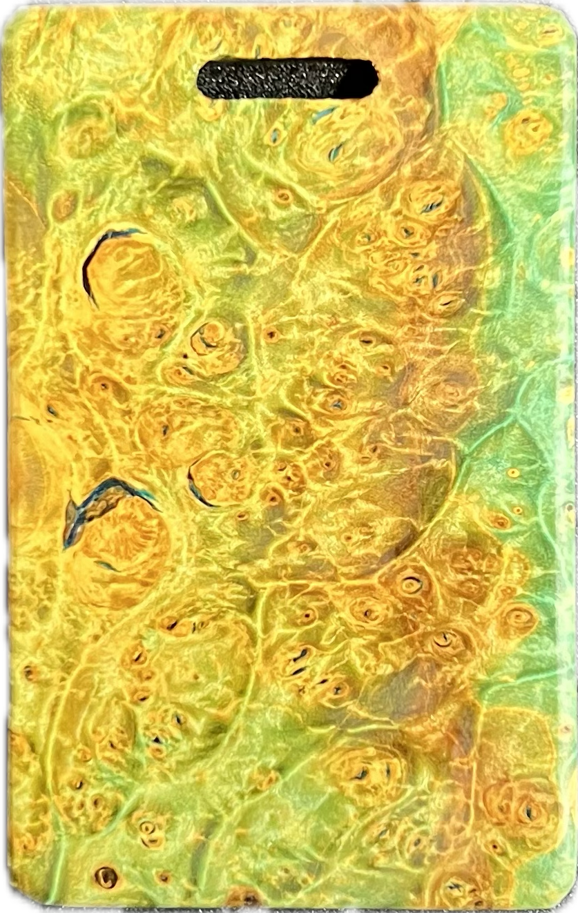 Add a splash of color to your golf bag with a Bradley bag tag. During the putter manufacturing process, there are often small pieces removed from the wood block during the shaping. These are then cut down to size, laser engraved to shape, and sanded by hand to remove the black scorch marks from the laser. They are then polished with a UV coating, and are now ready for your personalization. You are purchasing this exact piece, not one that will just look like it. Customize it further with your name, and even add a small single color image on the back.