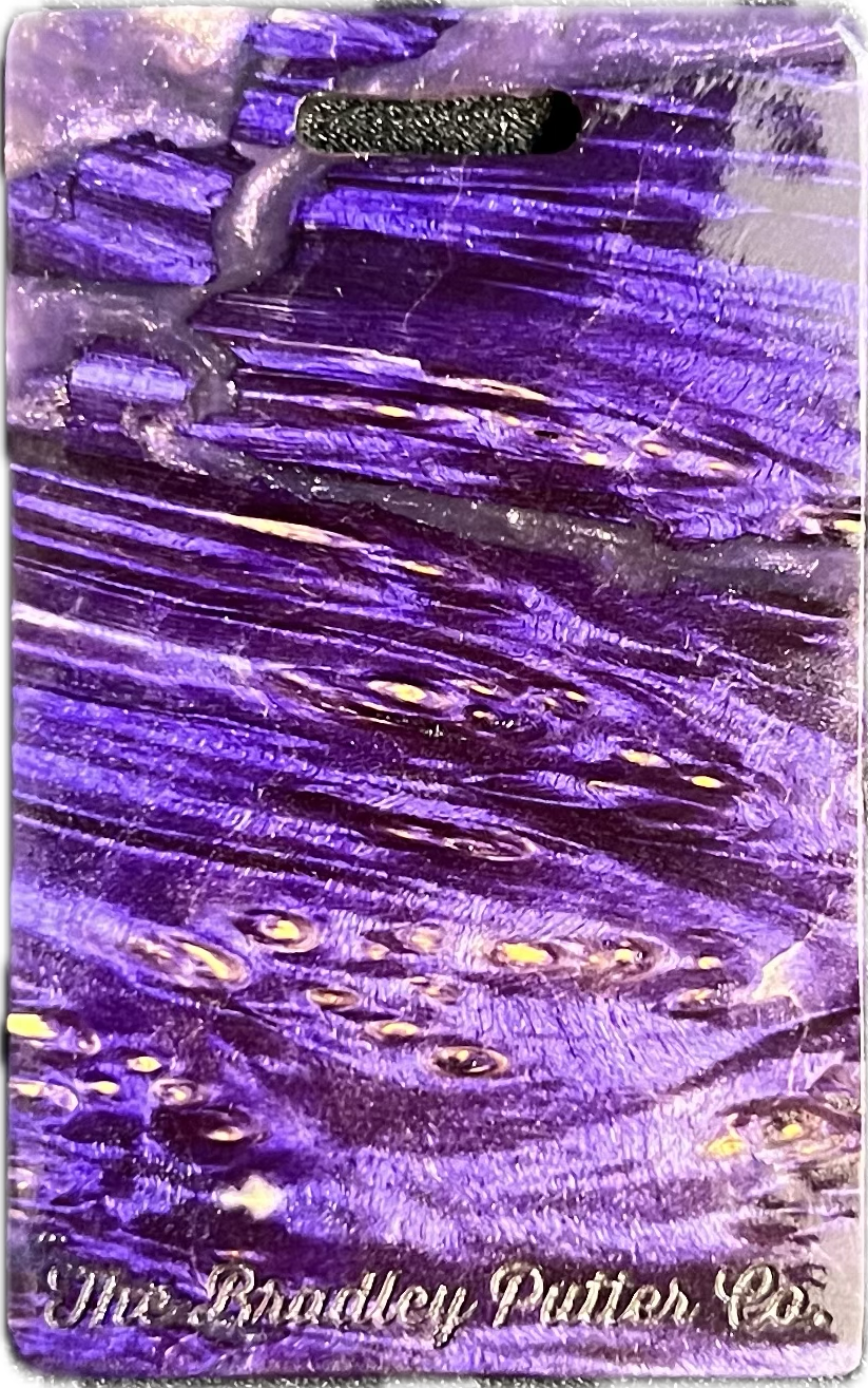 Add a splash of color to your golf bag with a Bradley bag tag. During the putter manufacturing process, there are often small pieces removed from the wood block during the shaping. These are then cut down to size, laser engraved to shape, and sanded by hand to remove the black scorch marks from the laser. They are then polished with a UV coating, and are now ready for your personalization. You are purchasing this exact piece, not one that will just look like it. Customize it further with your name, and even add a small single color image on the back.