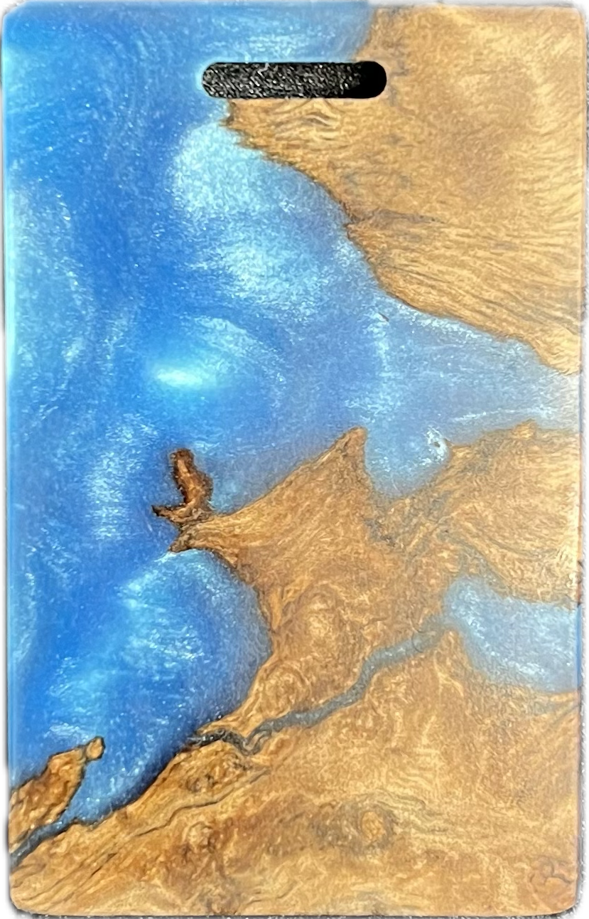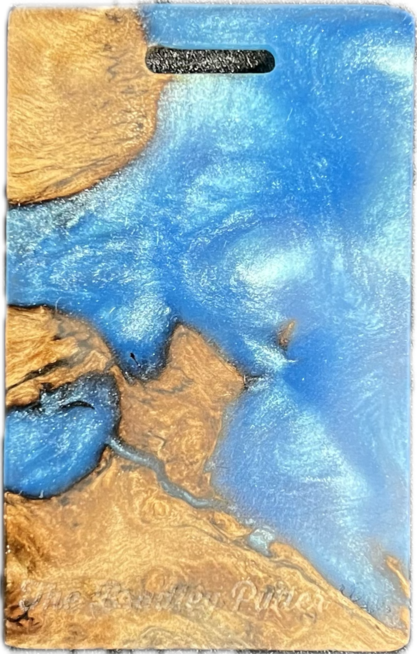 Add a splash of color to your golf bag with a Bradley bag tag. During the putter manufacturing process, there are often small pieces removed from the wood block during the shaping. These are then cut down to size, laser engraved to shape, and sanded by hand to remove the black scorch marks from the laser. You are purchasing this exact piece, not one that will just look like it. Customize it further with your name, and even add a small single color image on the back.