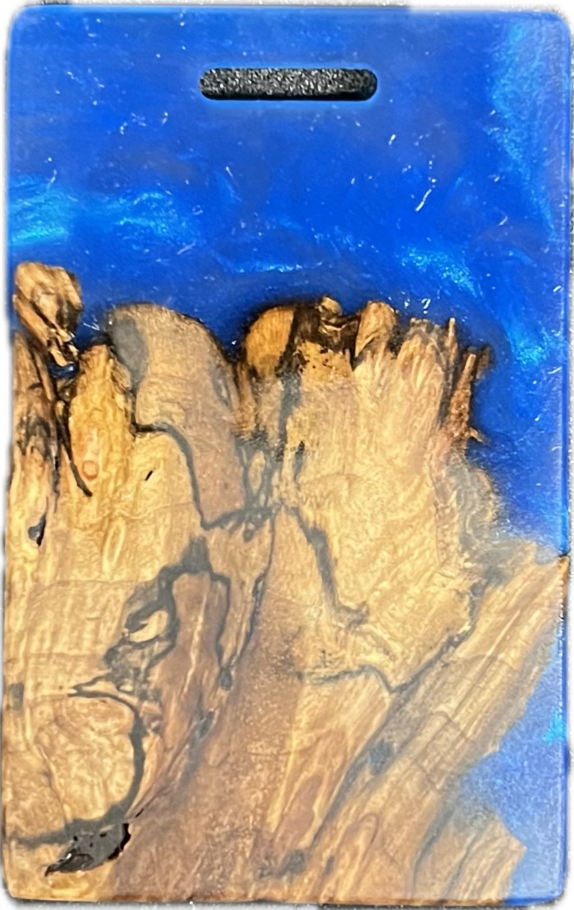 Add a splash of color to your golf bag with a Bradley bag tag. During the putter manufacturing process, there are often small pieces removed from the wood block during the shaping. These are then cut down to size, laser engraved to shape, and sanded by hand to remove the black scorch marks from the laser. You are purchasing this exact piece, not one that will just look like it. Customize it further with your name, and even add a small single color image on the back.