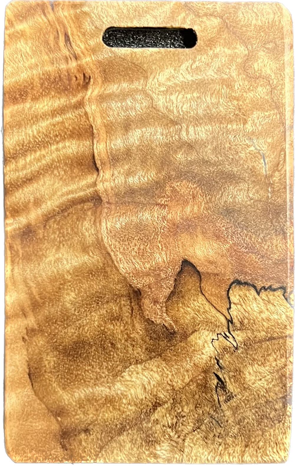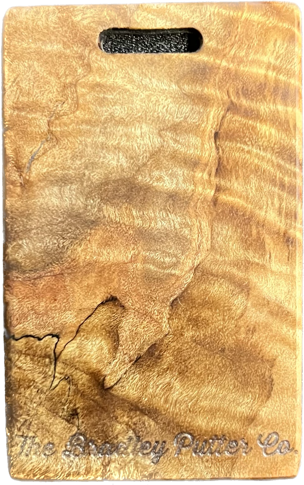 Add a splash of color to your golf bag with a Bradley bag tag. During the putter manufacturing process, there are often small pieces removed from the wood block during the shaping. These are then cut down to size, laser engraved to shape, and sanded by hand to remove the black scorch marks from the laser. They are then polished with a UV coating, and are now ready for your personalization. You are purchasing this exact piece, not one that will just look like it. Customize it further with your name, and even add a small single color image on the back.